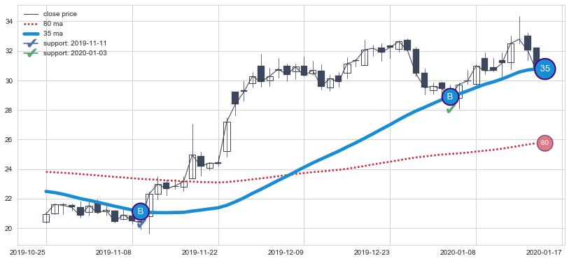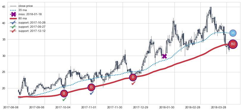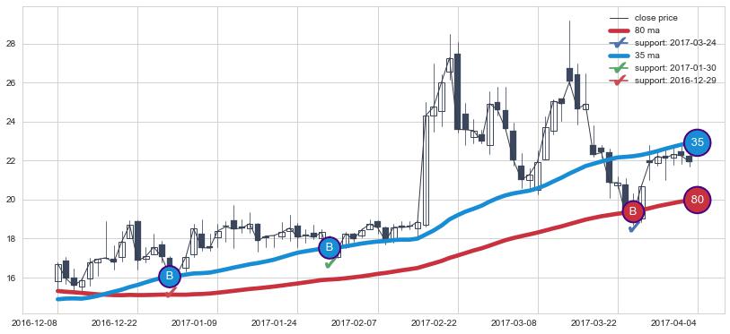 上涨趋势2016-12-08-2017-04-04,均线80, 35确认关键支撑3处