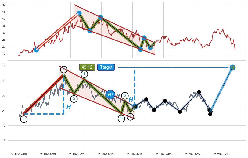 ➣ AI预测: 假定反转启动后, 第❶目标位置(2022-05-18, 17.98)