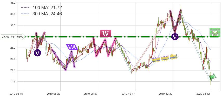 ♘ 阻力价格位27.43,可信任强度88.99%,距离最后交易2020-03-13形成的收盘价格19.35相差 +41.75%