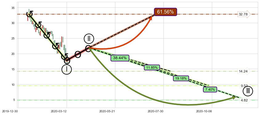 ➣ 大趋势循环浪继续向下概率38.44%