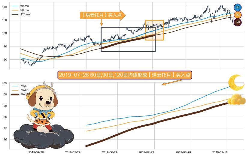⚀ 2019-05-30日-2019-09-23日显现 60日-90日-120日均线 【烘云托月】买入点 看多信号,后市看涨,买入