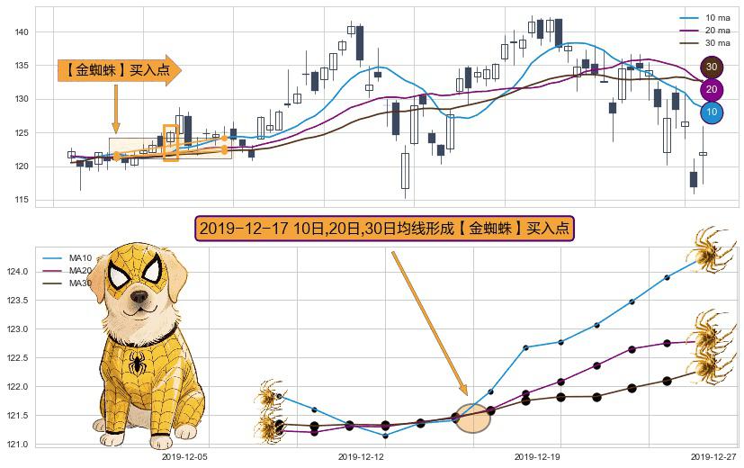 ⚀ 2019-12-17日显现 10日-20日-30日均线 【金蜘蛛】买入点 看多信号,后市看涨,买入