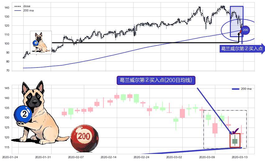 ⚀ 2020-03-12-日显现 葛兰威尔均线 200日均线 第②买入点 上升趋势的中继信号,后市看涨,买进信号
