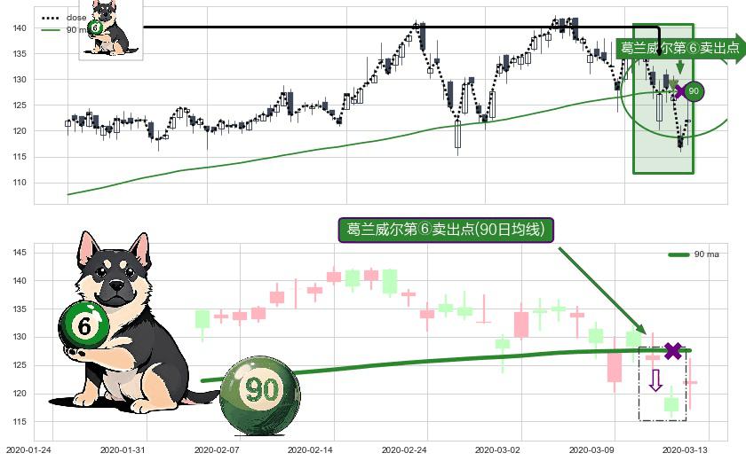 ⚀ 2020-03-11-日显现 葛兰威尔均线 90日均线 第⑥卖出点 走势反转见顶信号,后市看跌,卖出信号