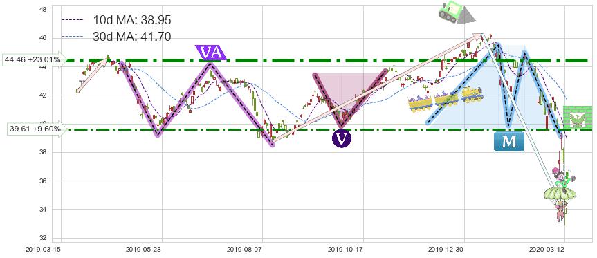 ➢ 【已达成】最小【整理】第一目标价格→(2020-03-09: 38.17 ), 后续继续【整理】下跌动力微弱,下跌较小