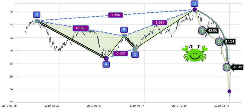 ➣ 已完成【螃蟹】形态起点X: 2019-04-17, 终点D: 2020-01-13, 共187交易日