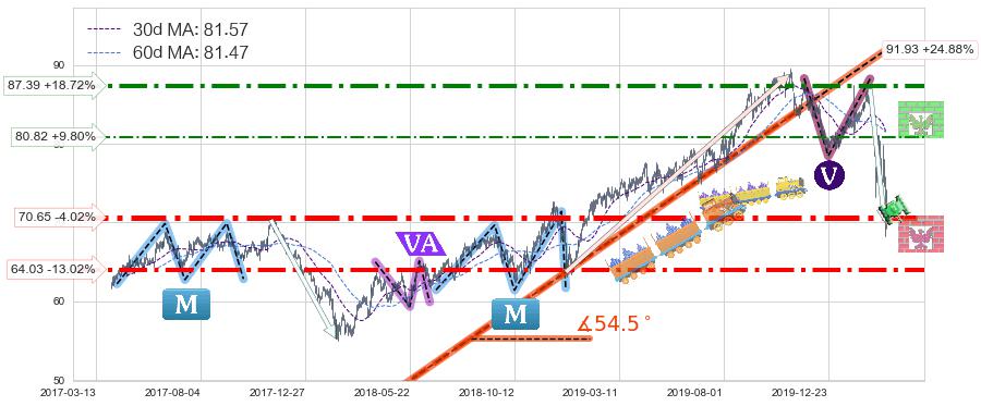 ♘ 阻力价格位87.39,可信任强度71.75%,距离最后交易2020-03-13形成的收盘价格73.61相差 +18.72%