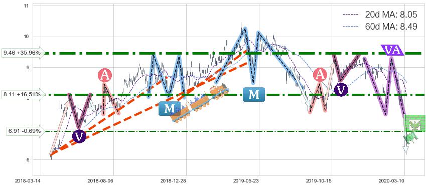 ➣ AI预测: 假定反转如期而至,第❷价格目标位置(2020-06-23, 8.80)
