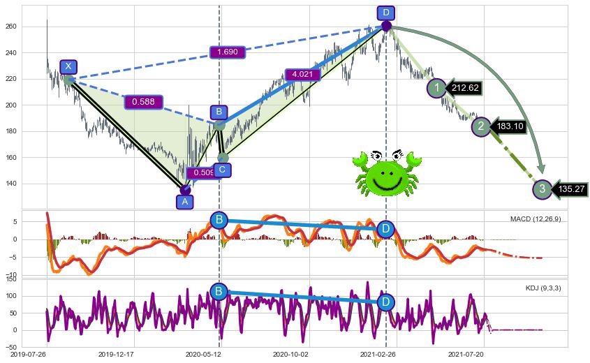 ➣ 已完成【螃蟹】形态起点X: 2019-08-30, 终点D: 2021-02-09, 共364交易日