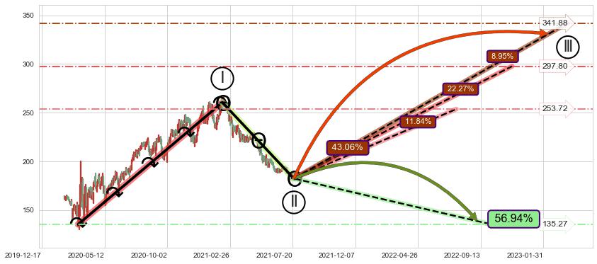 ➣ 2021-07-15到达第❷价格目标位置183.10