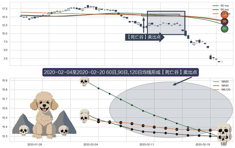 ⚀ 2020-02-05-日至2020-02-20-日显现 60日-90日-120日均线 【死亡谷】卖出点 看空信号,后市看跌,卖出