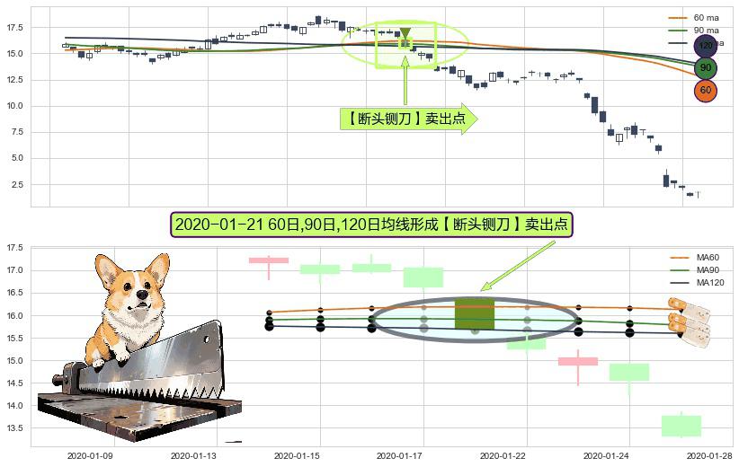 ⚀ 2020-01-21日显现 60日-90日-120日均线 【断头铡刀】卖出点 看空信号,后市看跌,卖出
