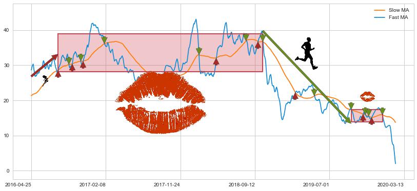 2016-08-05至2018-10-11 慢线与快线多次接触,存在上下穿越,有缠绕