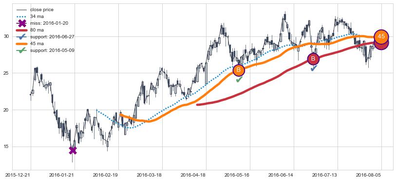 2015-12-16至2016-08-05 慢线与快线呈多头排列, 慢线与快线接触少,无缠绕