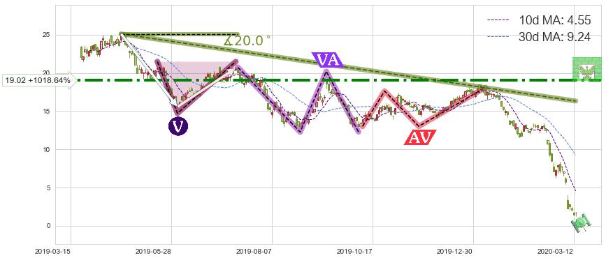 ♘ 阻力价格位19.02,可信任强度82.95%,距离最后交易2020-03-13形成的收盘价格1.7000相差 +1018.64%