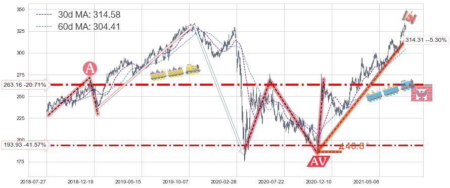 ♘ 支撑价格位263.16,可信任强度84.27%,距离最后交易2021-07-23形成的收盘价格331.91相差 -20.71%