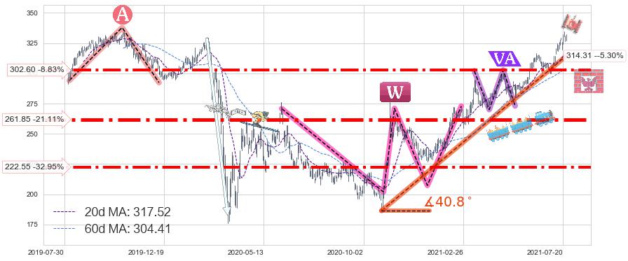 ♘ 支撑价格位222.55,可信任强度71.22%,距离最后交易2021-07-23形成的收盘价格331.91相差 -32.95%