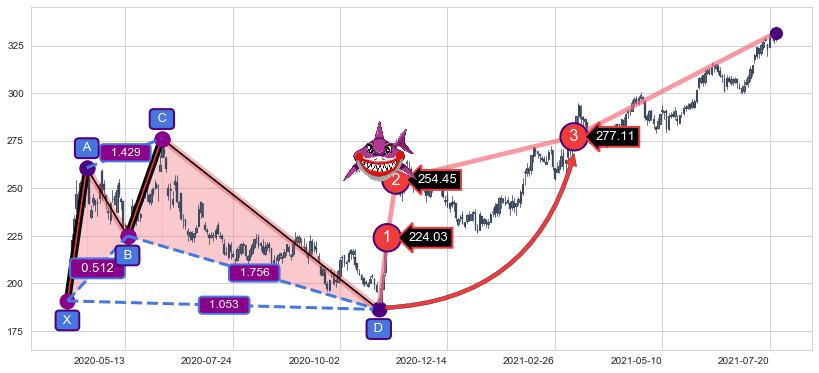 ➣ 已达成看涨【鲨鱼】形态全部的预期目标