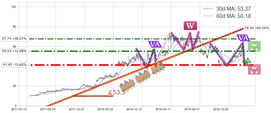 ♞ 30日均线:53.37,60日均线:50.18→ 快线>慢线