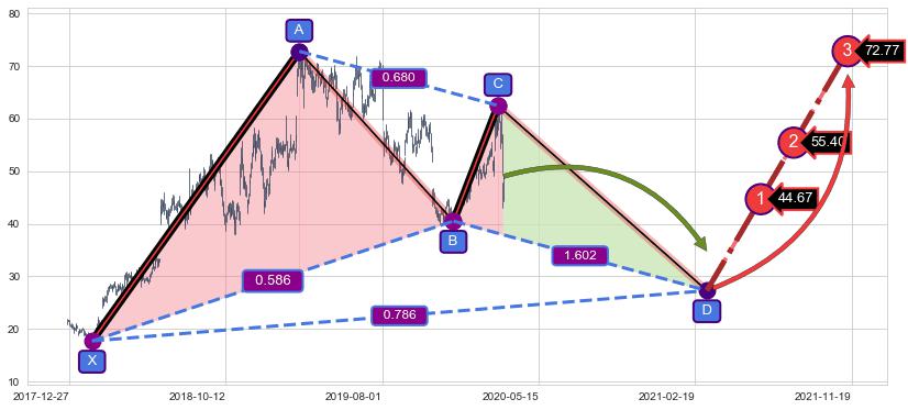 ➣ AI预测: 假定反转启动后, 第❶目标位置(2021-06-17, 44.67)
