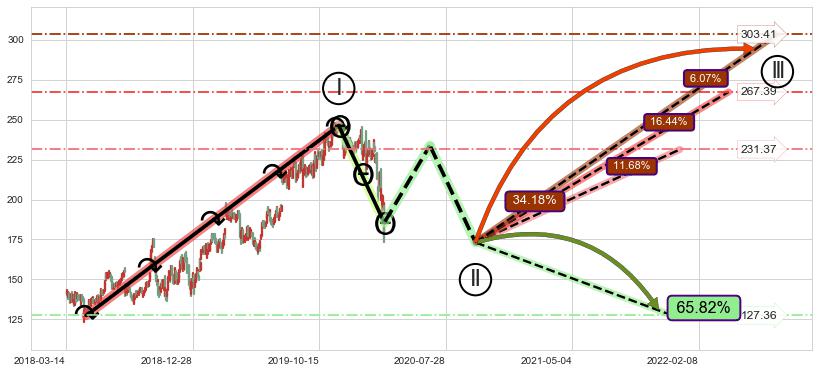 ➢ 循环浪继续向上【最低】位置(2021-12-28, 231.37),匹配聚类样本比例34.17%, 可能性概率11.68%