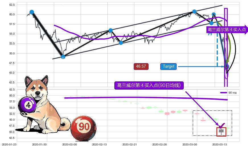 ➢ 【已达成】最小【整理】第一目标价格→(2020-03-12: 46.57 ), 后续继续【整理】下跌动力依然存在,下跌空间适中