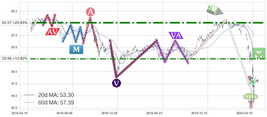 ♞ 20日均线:53.30,60日均线:57.39→ 快线<慢线