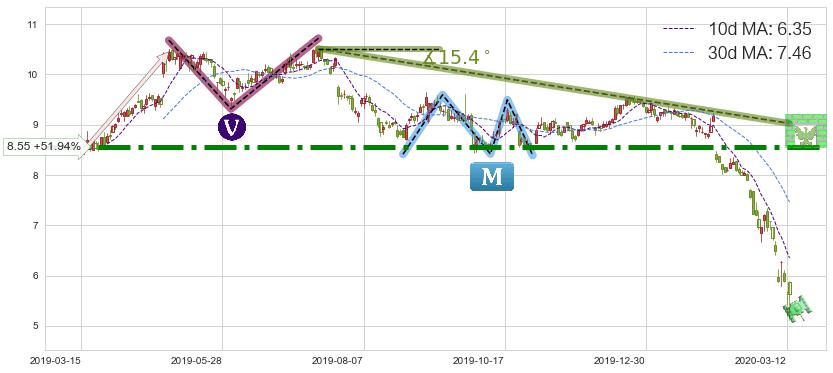 ♘ 阻力价格位8.55,可信任强度85.97%,距离最后交易2020-03-13形成的收盘价格5.63相差 +51.94%
