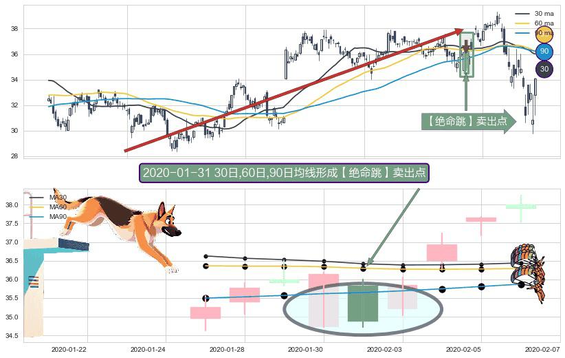 ⚀ 2020-01-31日显现 30日-60日-90日均线 【绝命跳】卖出点 看空信号,后市看跌,卖出