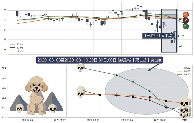 ⚀ 2020-03-04-日至2020-03-10-日显现 20日-30日-60日均线 【死亡谷】卖出点 看空信号,后市看跌,卖出