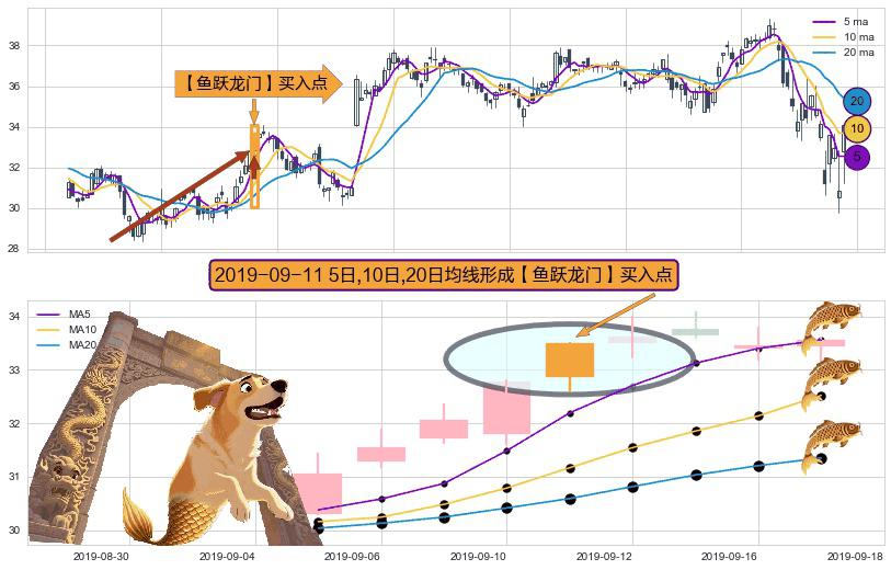⚀ 2019-09-11日显现 5日-10日-20日均线 【鱼跃龙门】买入点 看多信号,后市看涨,买入