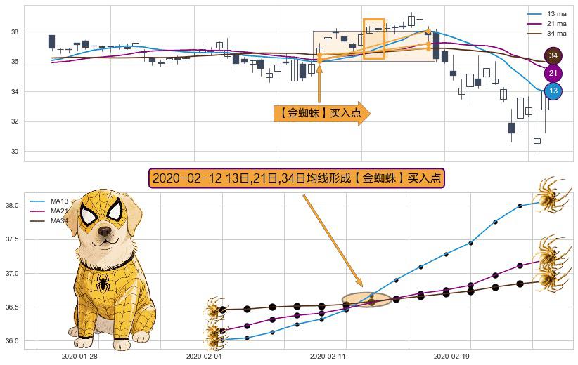 ⚀ 2020-02-12日显现 13日-21日-34日均线 【金蜘蛛】买入点 看多信号,后市看涨,买入