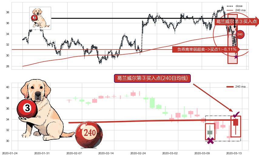 ⚀ 2020-03-13-日显现 葛兰威尔均线 240日均线 第③买入点 上升趋势的中继信号,后市看涨,买进信号