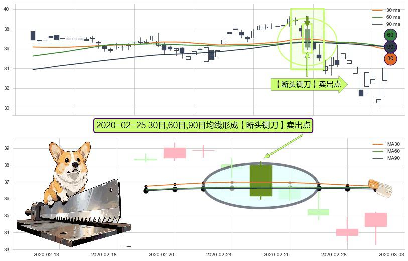 ⚀ 2020-02-25日显现 30日-60日-90日均线 【断头铡刀】卖出点 看空信号,后市看跌,卖出