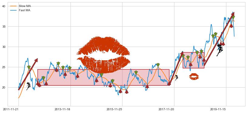 2012-08-16至2017-09-13 慢线与快线多次接触,存在上下穿越,有缠绕