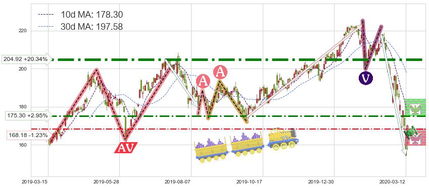 ♘ 阻力价格位175.30,可信任强度59.25%,距离最后交易2020-03-13形成的收盘价格170.28相差 +2.95%
