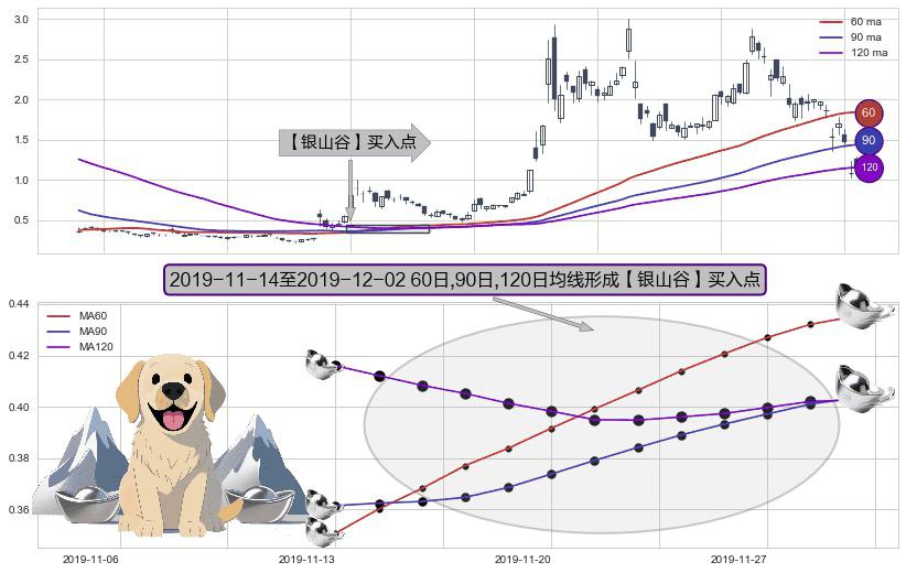 ⚀ 2019-11-15-日至2019-12-02-日显现 60日-90日-120日均线 【银山谷】买入点 看多信号,后市看涨,买入
