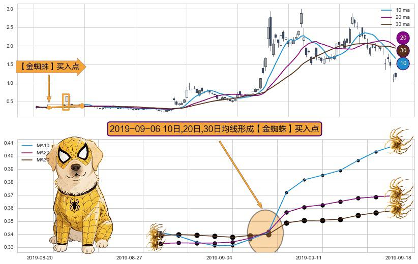 ⚀ 2019-09-06日显现 10日-20日-30日均线 【金蜘蛛】买入点 看多信号,后市看涨,买入