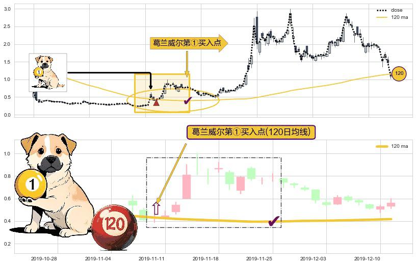 ⚀ 2019-11-08-日显现 葛兰威尔均线 120日均线 第买①入点 走势反转见底信号,后市看涨,买进信号