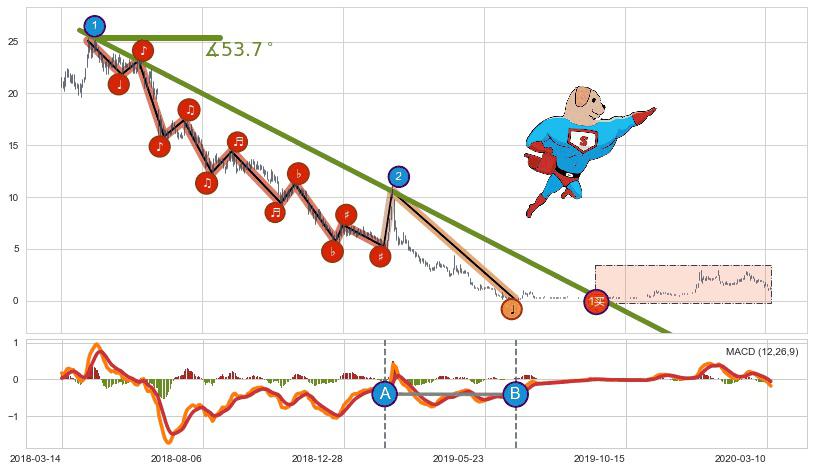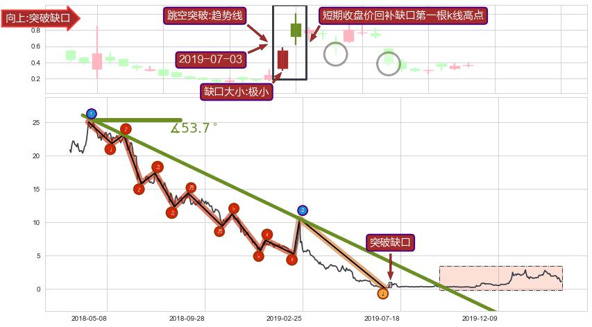 ➣ 2018-04-03-2019-08-07下跌趋势存在反转上涨[机会],其原下跌趋势的阻力位(-8.2000000)已被突破[强支撑信号],原下跌趋势角度: 53.7˚