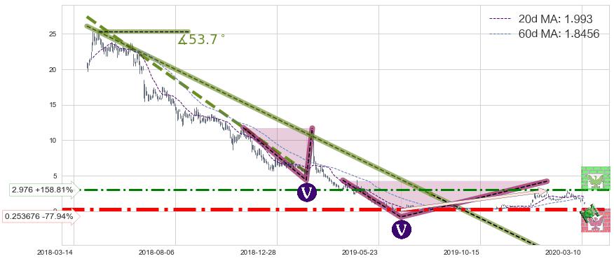 ⚔️ 2018-04-03-2019-08-07下跌趋势存在反转上涨[机会],其原下跌趋势的阻力位(-8.2000000)已被突破[强支撑信号],原下跌趋势角度: 53.7˚