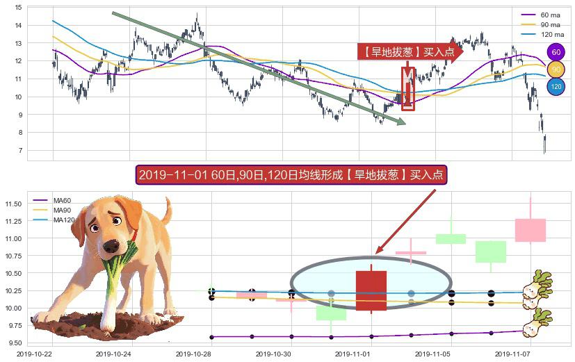形态多维评估: ⚀ 2019-11-01日显现 60日-90日-120日均线 【旱地拔葱】买入点 看多信号,后市看涨,买入
