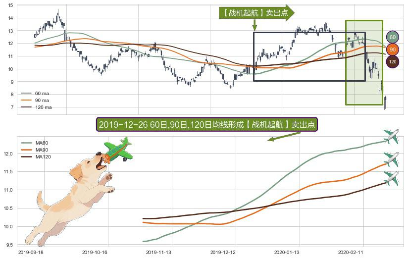 形态多维评估: ⚀ 2019-10-31日-2020-02-21日显现 60日-90日-120日均线 【战机起航】卖出点 看空信号,后市看跌,卖出