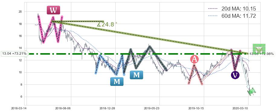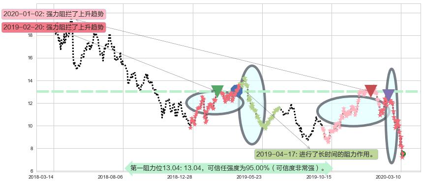 ♘ 阻力价格位13.04,可信任强度95.00%,距离最后交易2020-03-13形成的收盘价格7.53相差 +73.21%
