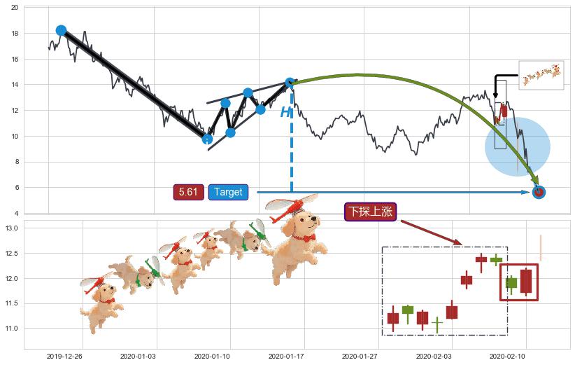 ➢ 高点影线(2020-03-13: 7.89 )→回踩→第二根k线高点(2020-03-12: 7.75 )