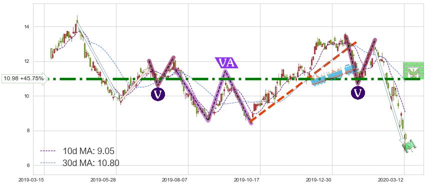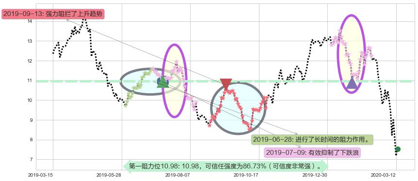 ♘ 阻力价格位10.98,可信任强度86.73%,距离最后交易2020-03-13形成的收盘价格7.53相差 +45.75%