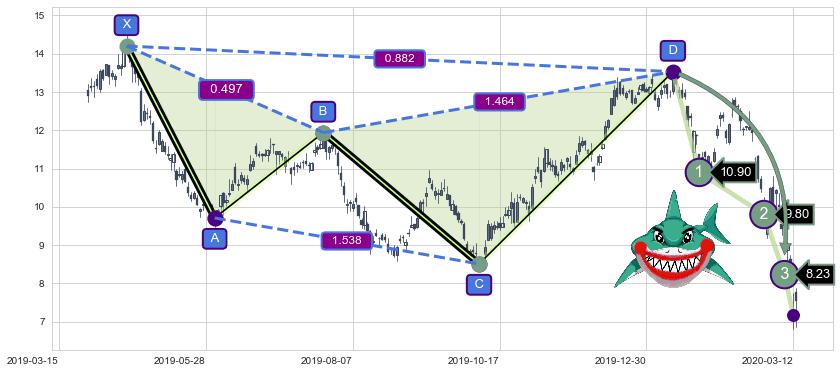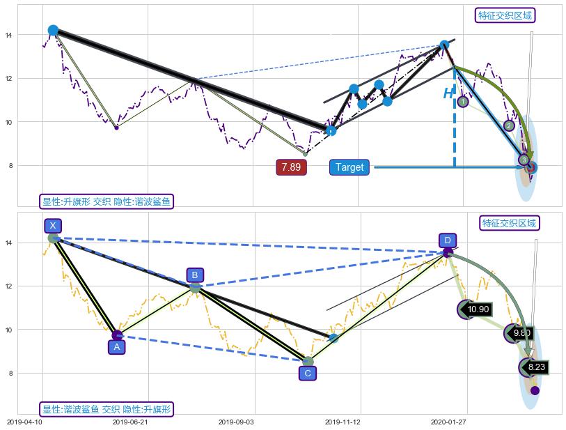 ➣ 已完成【鲨鱼】形态起点X: 2019-04-17, 终点D: 2020-01-13, 共187交易日