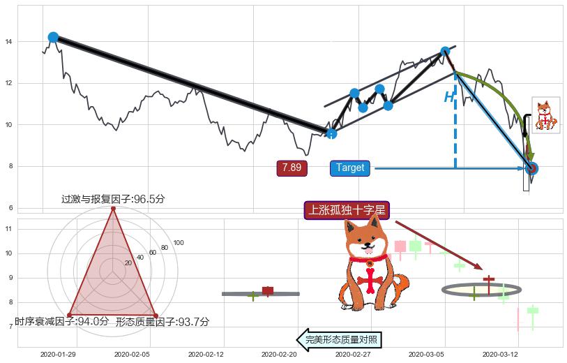 ➢ 高点影线(2020-03-13: 7.89 )→回踩→第二根k线高点(2020-03-12: 7.75 )