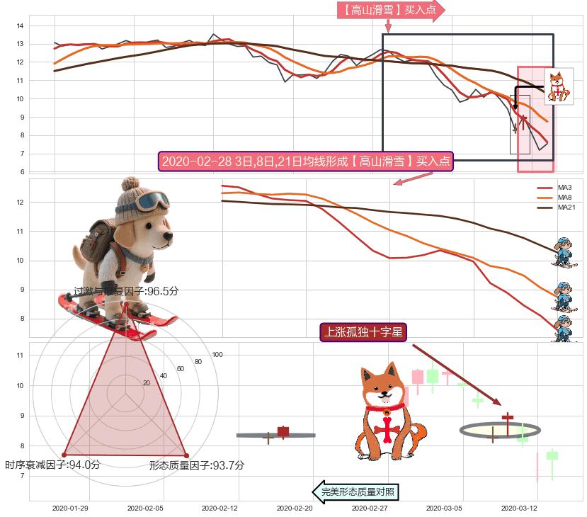 | 4 🅚:【高山滑雪】买入点 ➕ 📡:谐波鲨鱼猜想第❸目标位置到达后支撑临近(均值回复) ☞ 看多信号 ⇥ 【均线】交织【图形】⇥ 综合量化分数: 68 | > |
