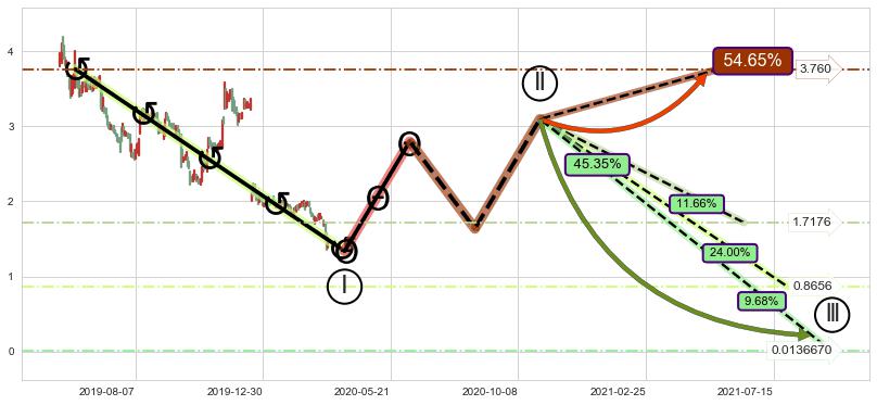 ➢ 循环浪继续向下【最高】位置(2021-06-14, 1.7176),匹配聚类样本比例25.72%, 可能性概率11.66%